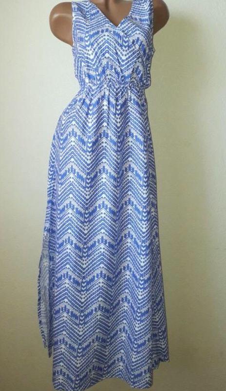 Сарафан платье длинное макси белого и синего цвета с v-образным ...