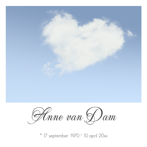 Moderne rouwkaart man of vrouw met lucht en hartjes wolk
