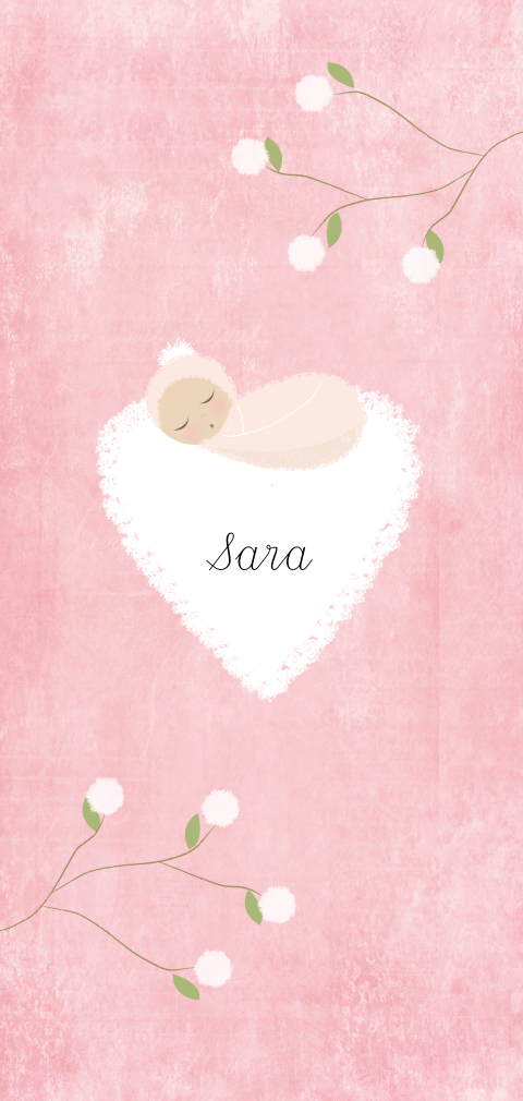 lief geboortekaartje voor een meisje met hartjes wolk en slapende baby